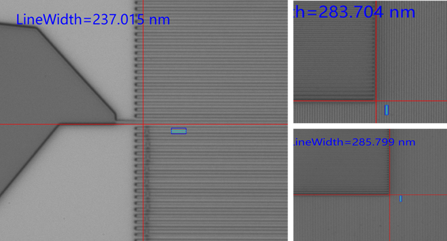 使用徕卡365纳米紫外LED光源+徕卡DM12000M+徕卡150倍紫外专用物镜拍摄的晶圆表面CD尺寸